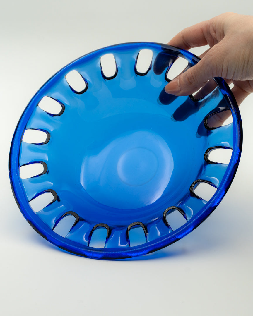 This deep cobalt blue bowl gives your dining table a fun twist. We love this and the fun cutouts at the edge of the bowl. Use it as a catchall or maybe a fun way to store your dip in for some chips.