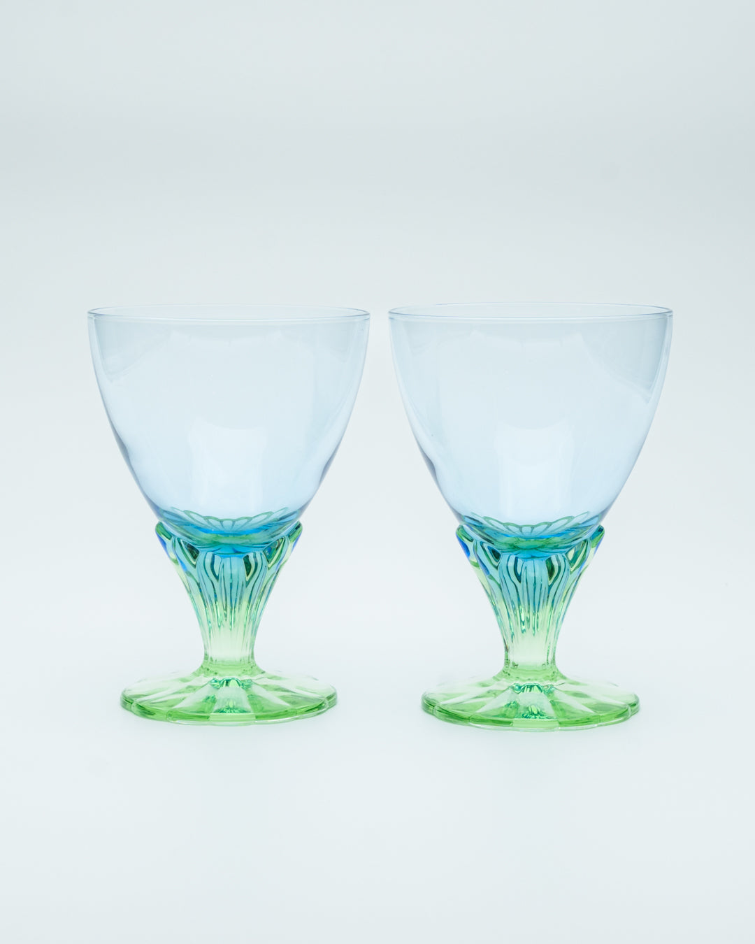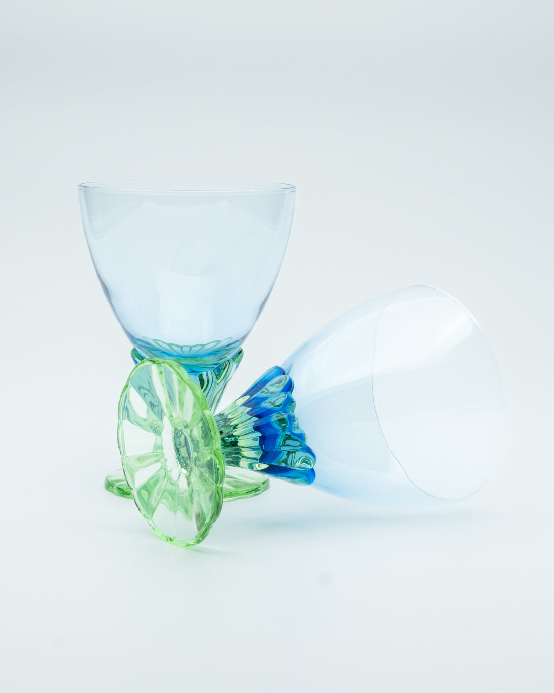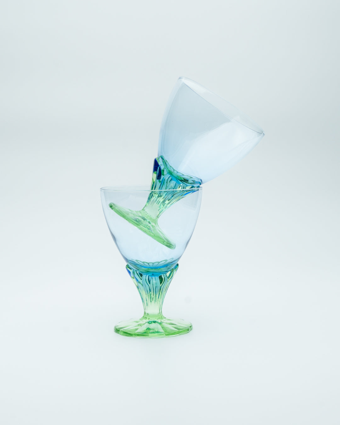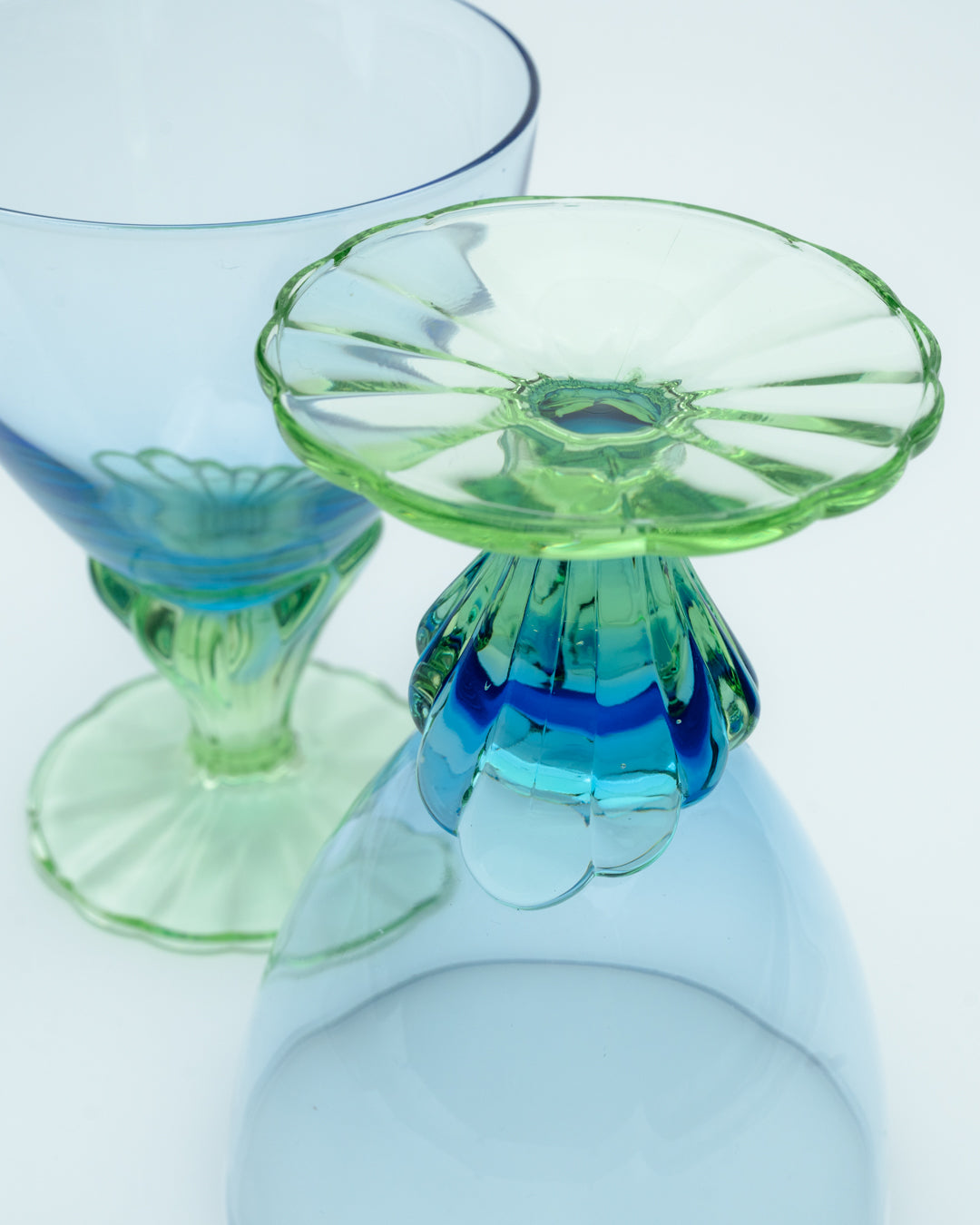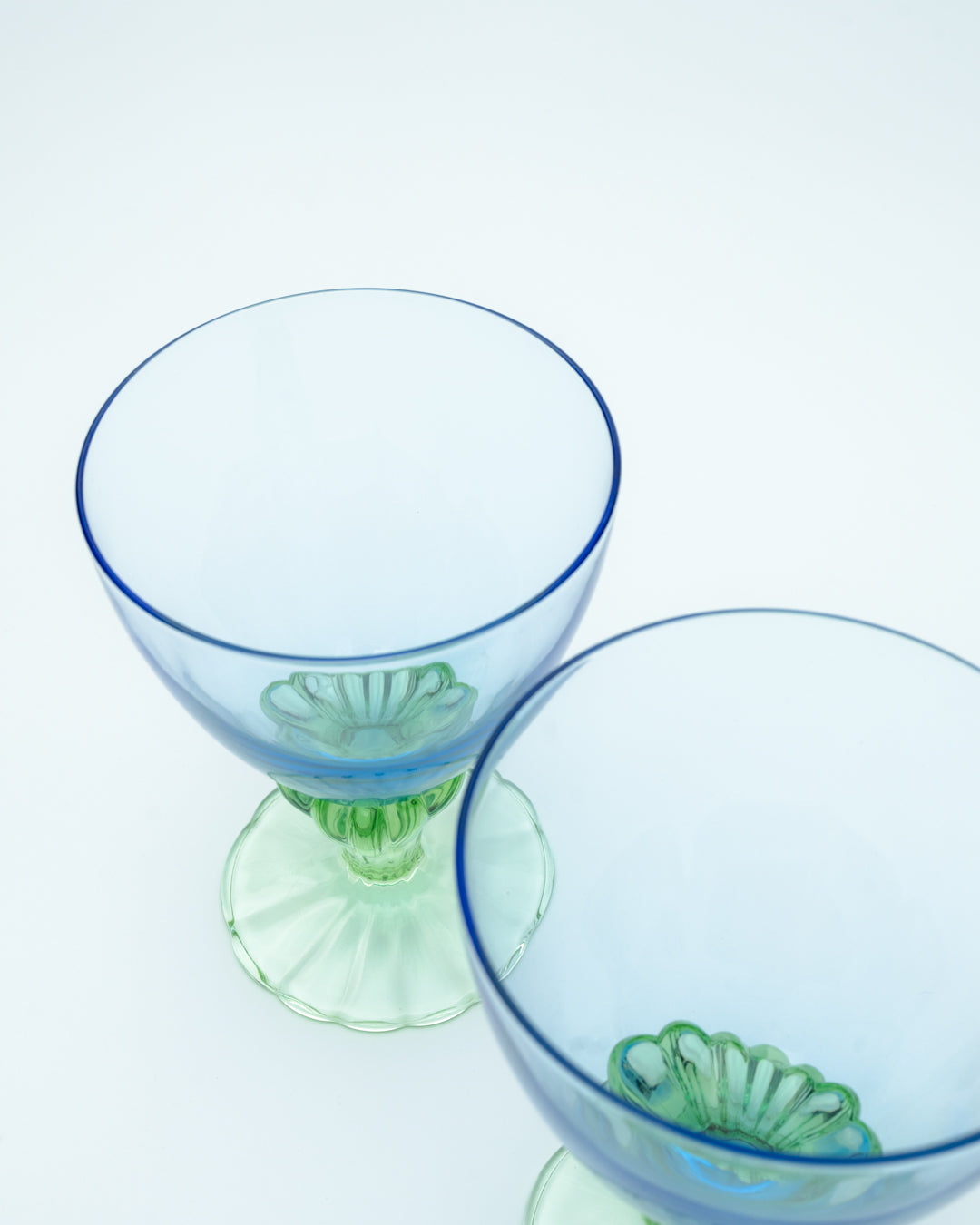 Bring a pop of colour to your dinner table with this charming set of blue and green coloured coupes. We're especially loving the beautifully shaped stem. Who wouldn't want to have an ice cream or just a very large glass of any liquor in this set?