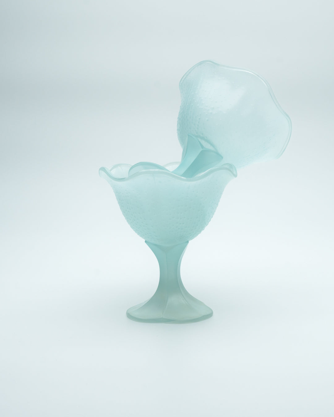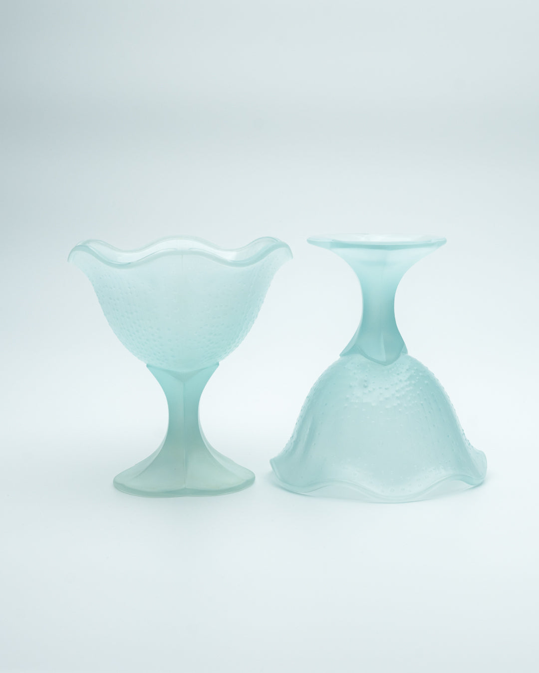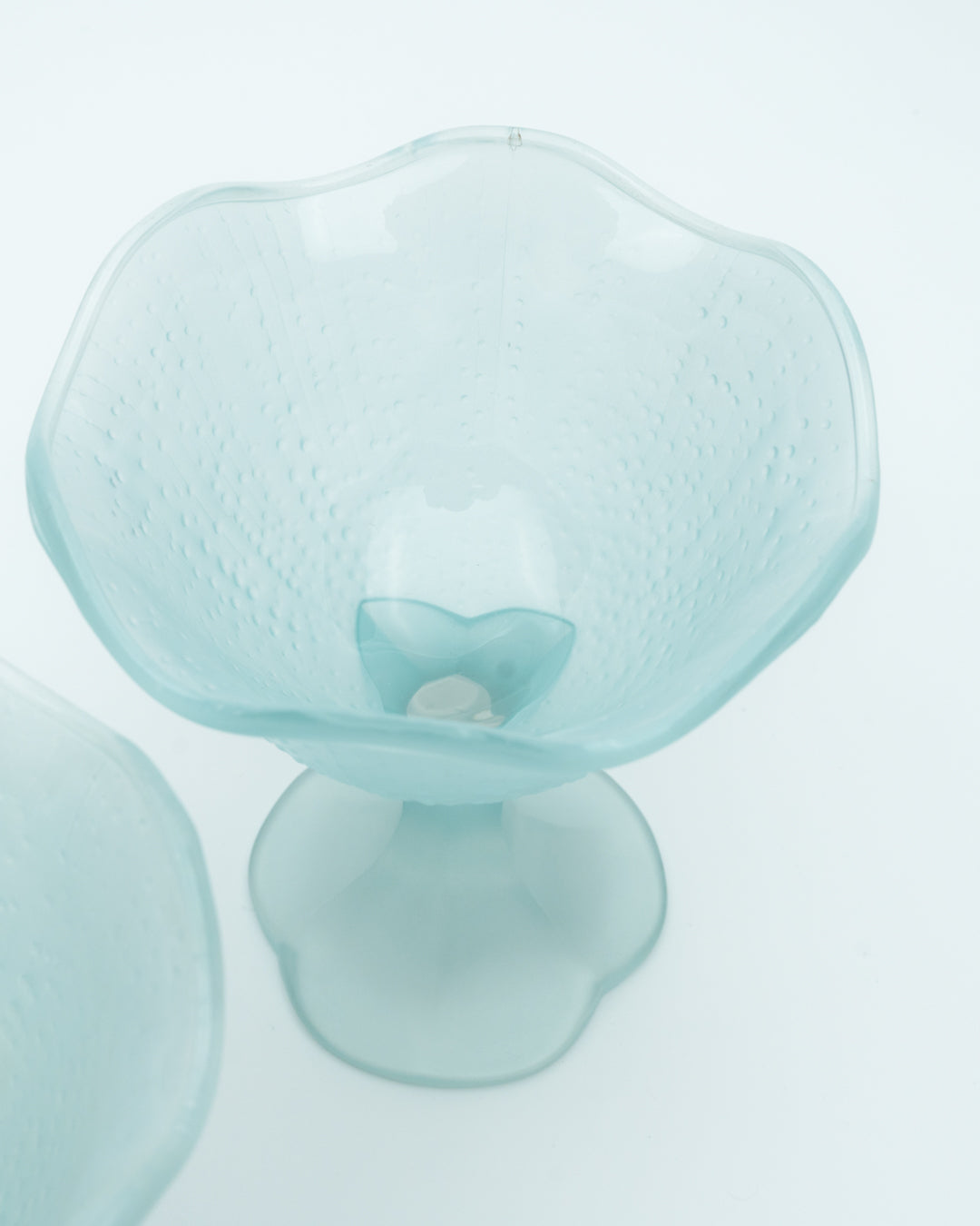 These frosted coupes guarantee a little extra dose of everyday joy, no matter what ice cream you're eating. They have a swirly top with a beautiful stem.